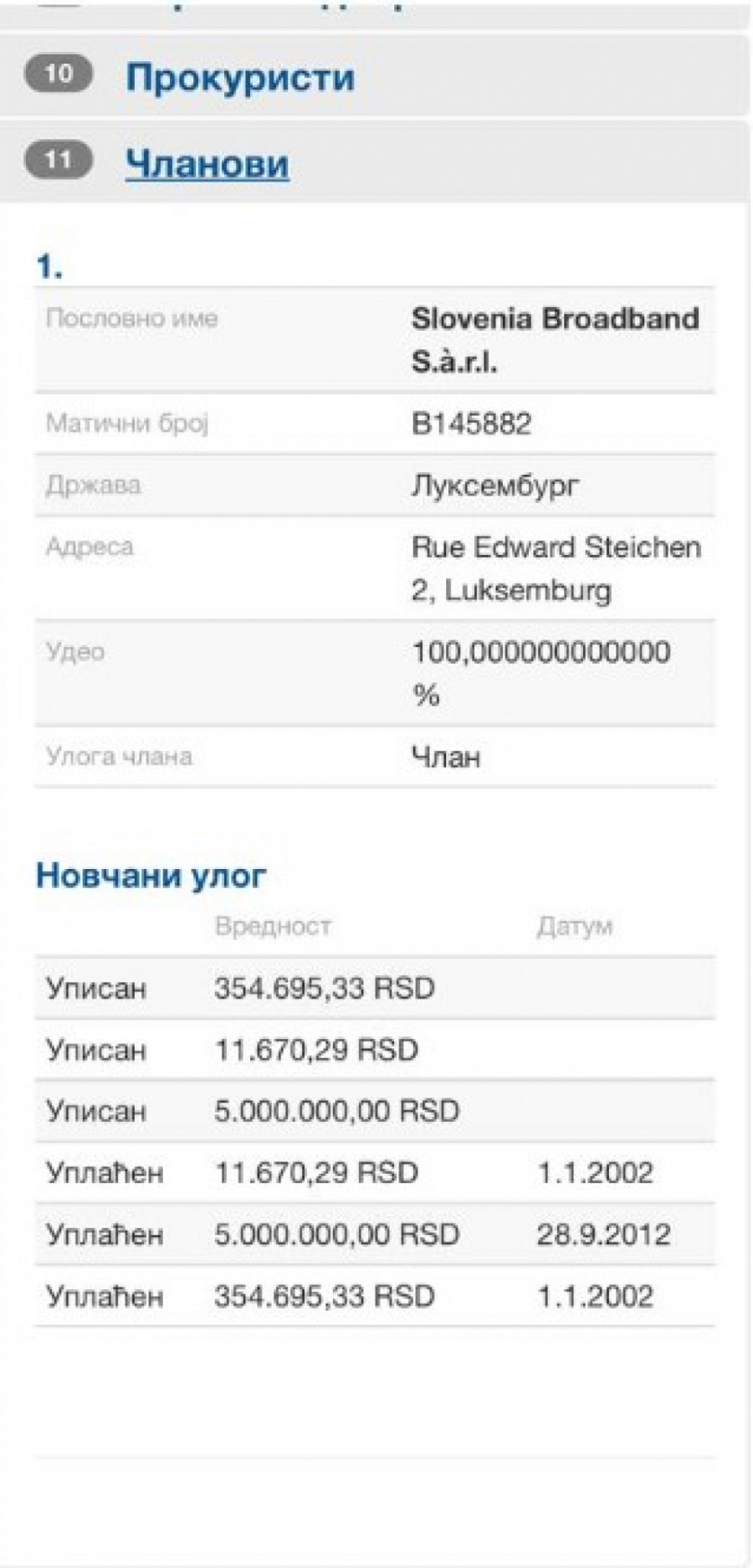 Prošle godine su, kako se može videti u priloženoj dokumentaciji, imali prihod od toga 25.000.000€ a predsednik te firme je Viktorija Boklag koja je i potpredsednica upravnog odbora.