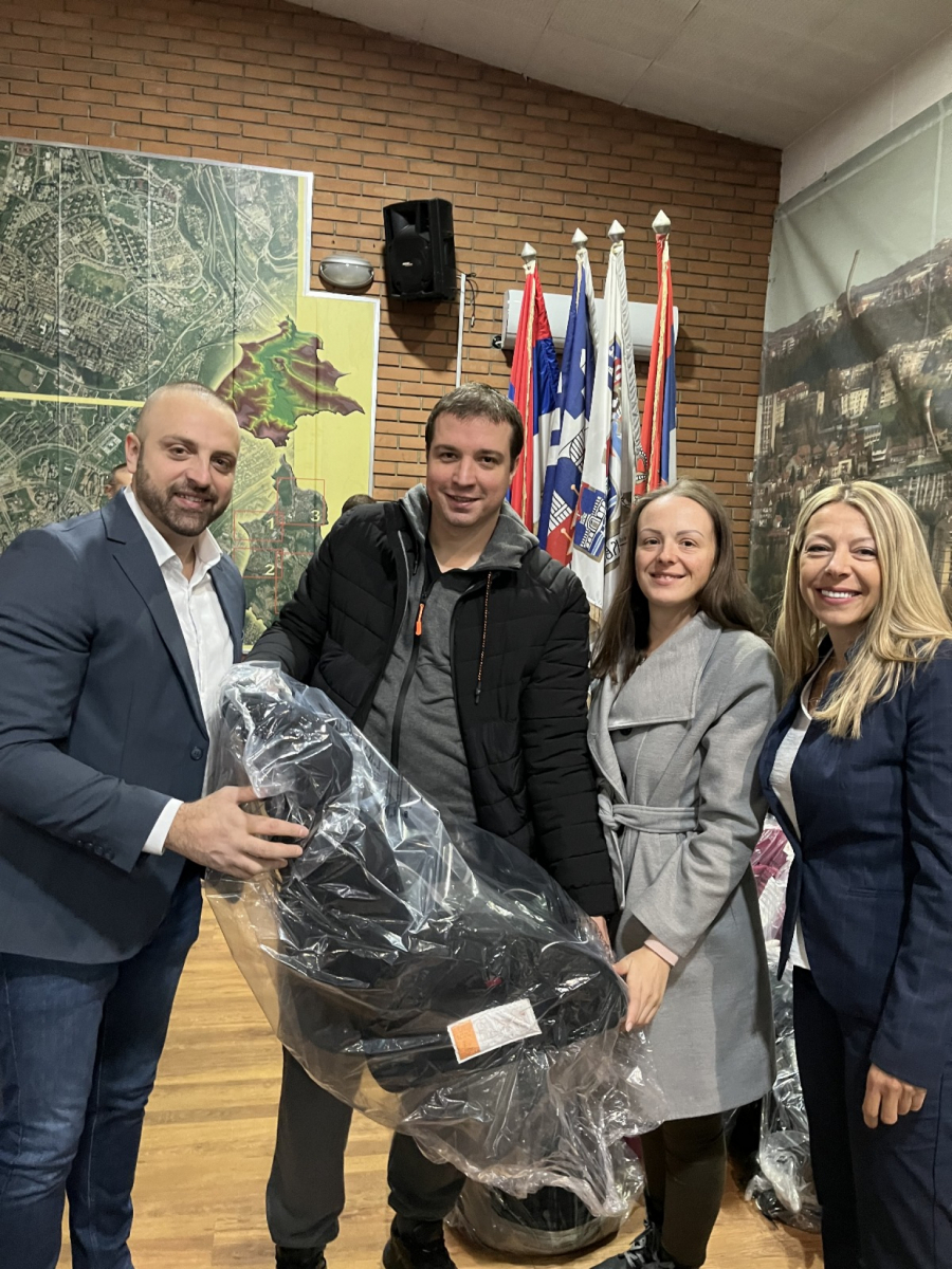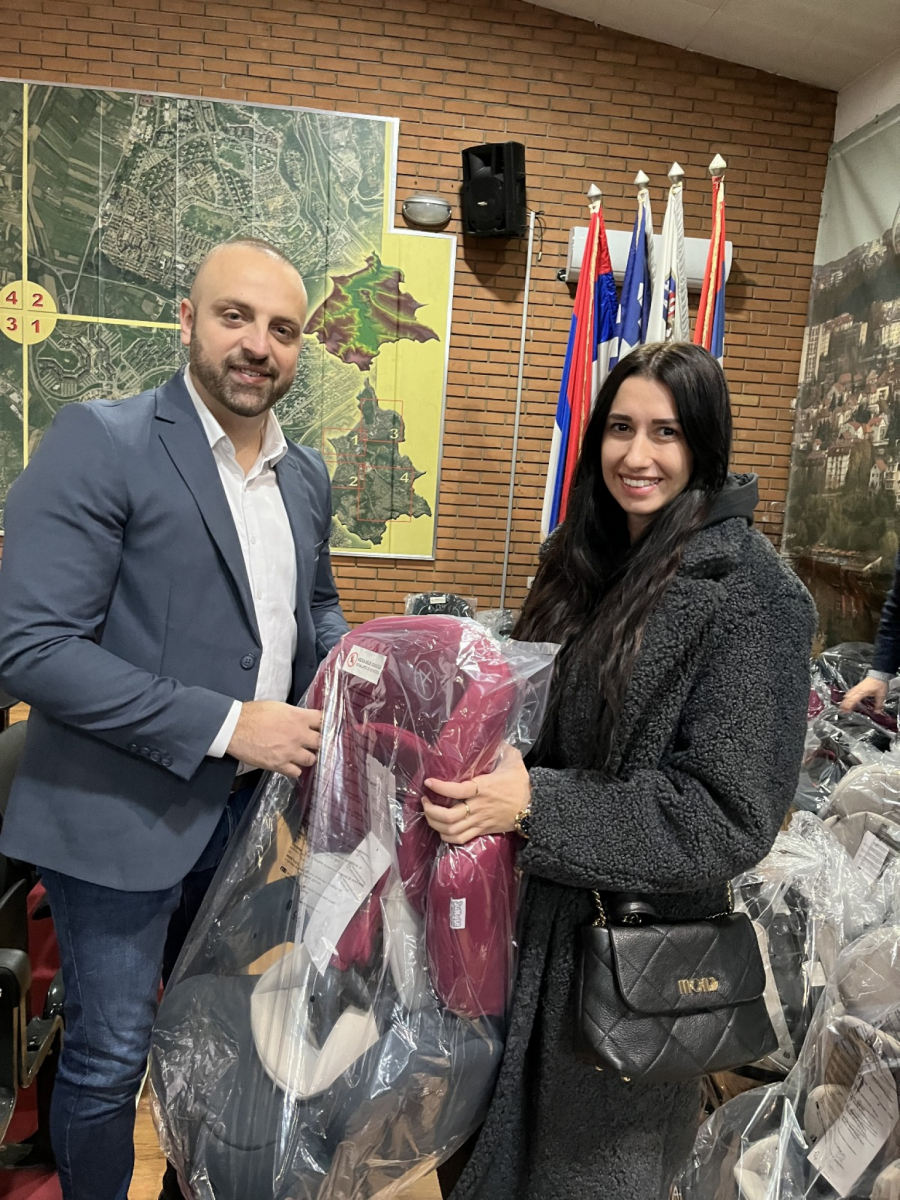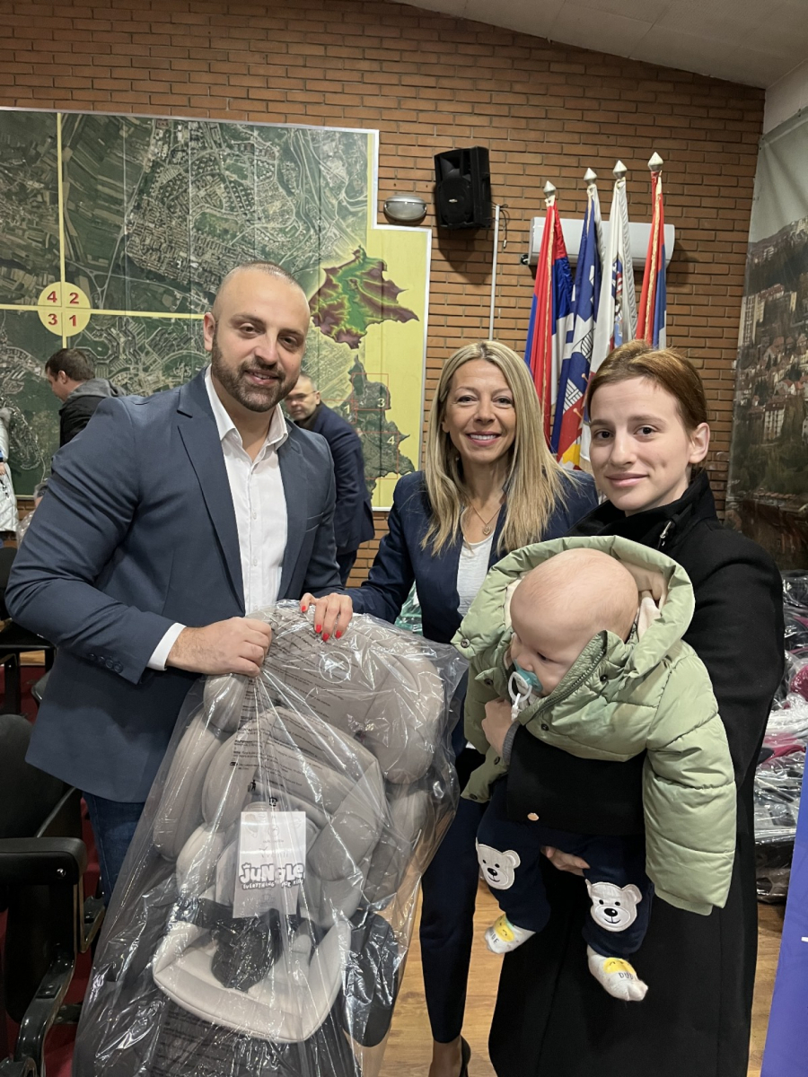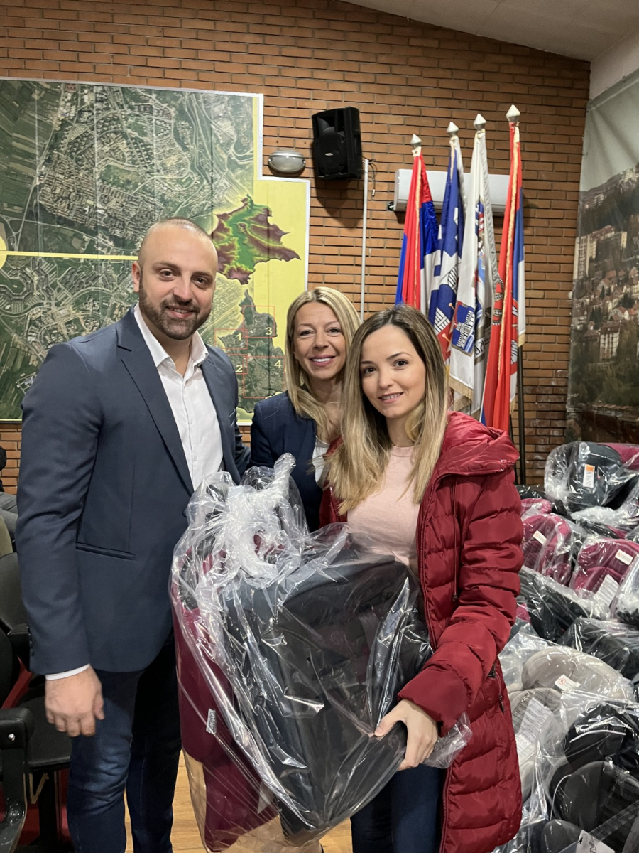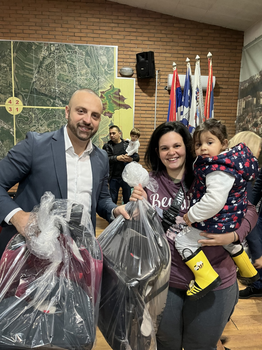 Nakon toga Simić je zajedno sa pomoćnicom direktora Agencije za bezbednost saobraćaja uručivao sedišta roditeljima.