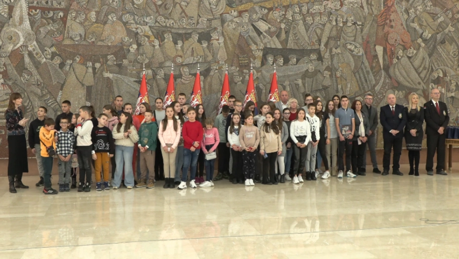 Deca na KiM pokazuju srecu i zadovoljstvo sto su primljena i ugoscena u Palatu Srbije