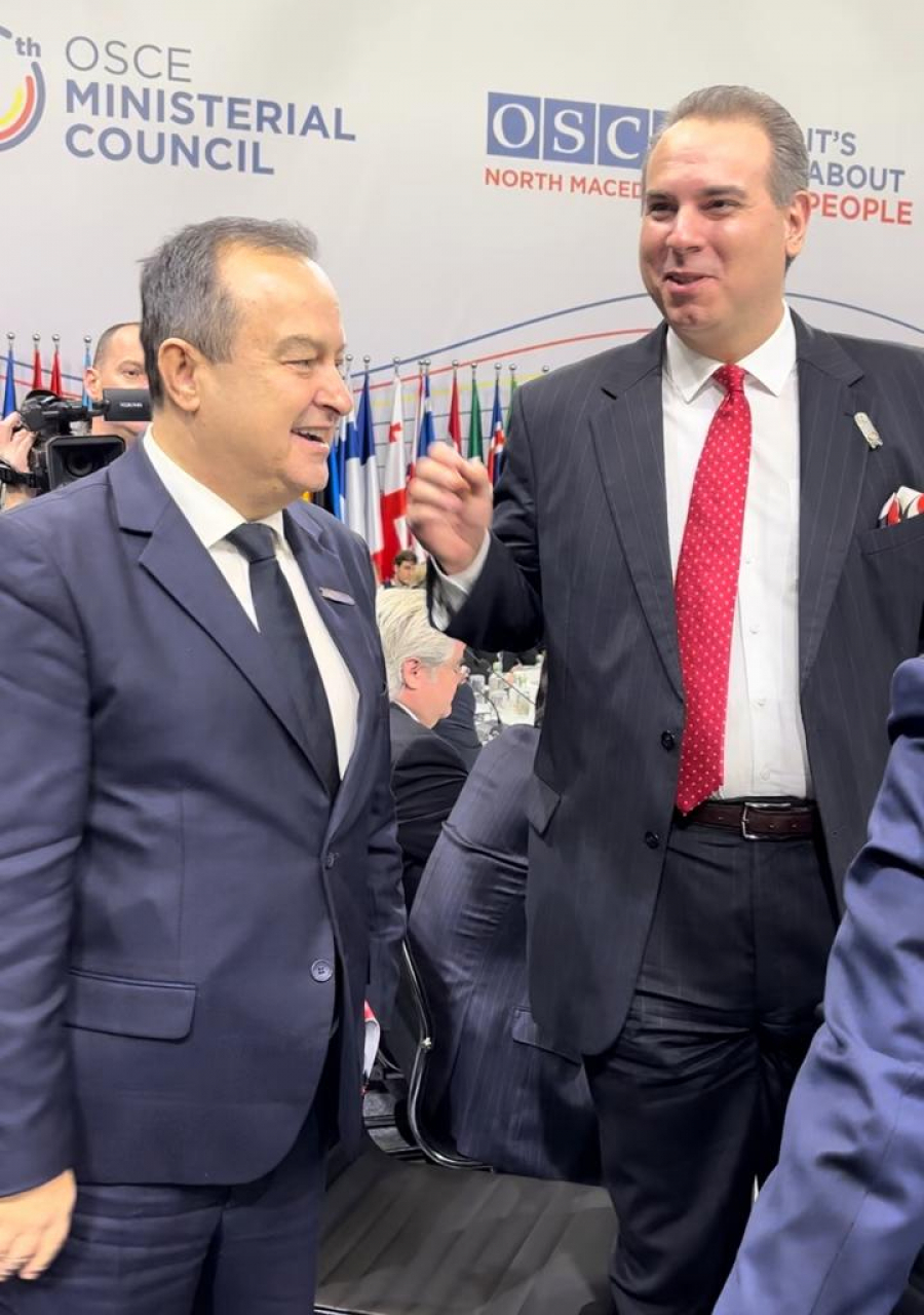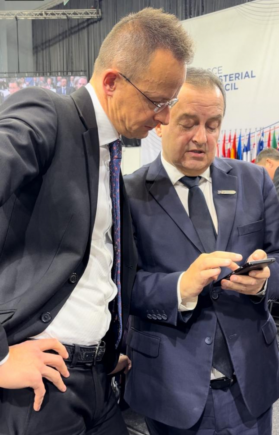 U razgovoru sa šefom diplomatije susedne Mađarske Peterom Sijartom, Dačić je razmenio mišljenje o predstojećim zajedničkim aktivnostima, ali i o stanju u OEBS i mogućnostima za donošenje odluka koje će omogućiti nastavak funkcionisanja ove organizacije koja okuplja 57 zemalja.
