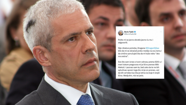 "Pošto mi se javno obratio javno ću mu i odgovoriti. Nije nikakve potrebe, Dragane Djilase bilo da mi se obraćaš preko medija na ovu temu i da cinično poručuješ šta da mi kaže neko “ako me sretne”, napisao je Tadić na društvenoj mreži X (Tviter).