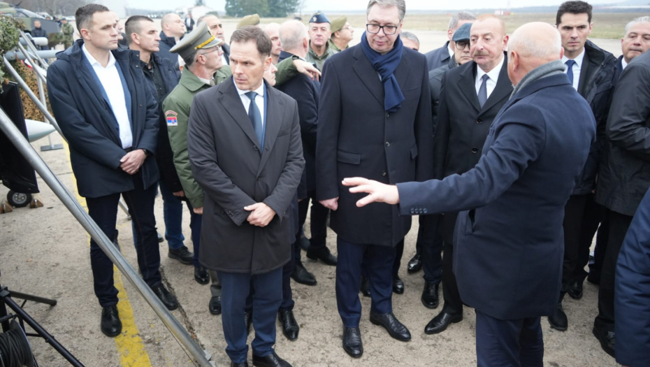 PRIKAZ BORBENE SPOSOBNOSTI I BORBENIH PLATFORMI Vučić sa Alijevim na vojnom aerodromu „Narednik-pilot Mihajlo Petrović“
