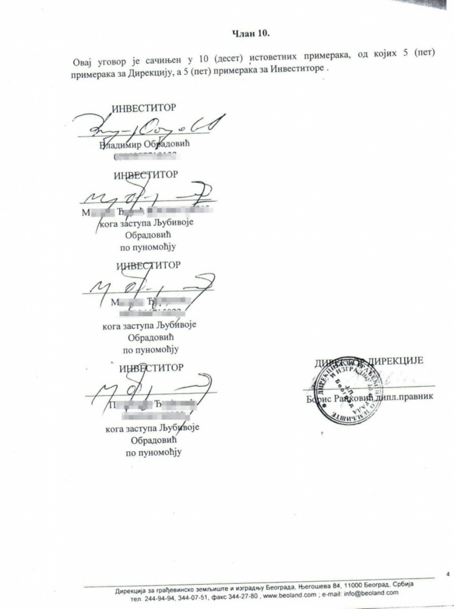 Kako pokazuju papiri do kojih je došao Informer, Obradović je 2006. godine dobio dozvolu da u Učiteljskoj ulici sagradi stambenu zgradu sa četiri stana ukupne površine 470 kvadrata, ali je, sa još troje suinvestitora od kojih je jedan njegov otac, odlučio da gradi kako se njemu prohte - drugim rečima, zarad ličnog profita napravio je urbanistički haos u glavnom gradu!