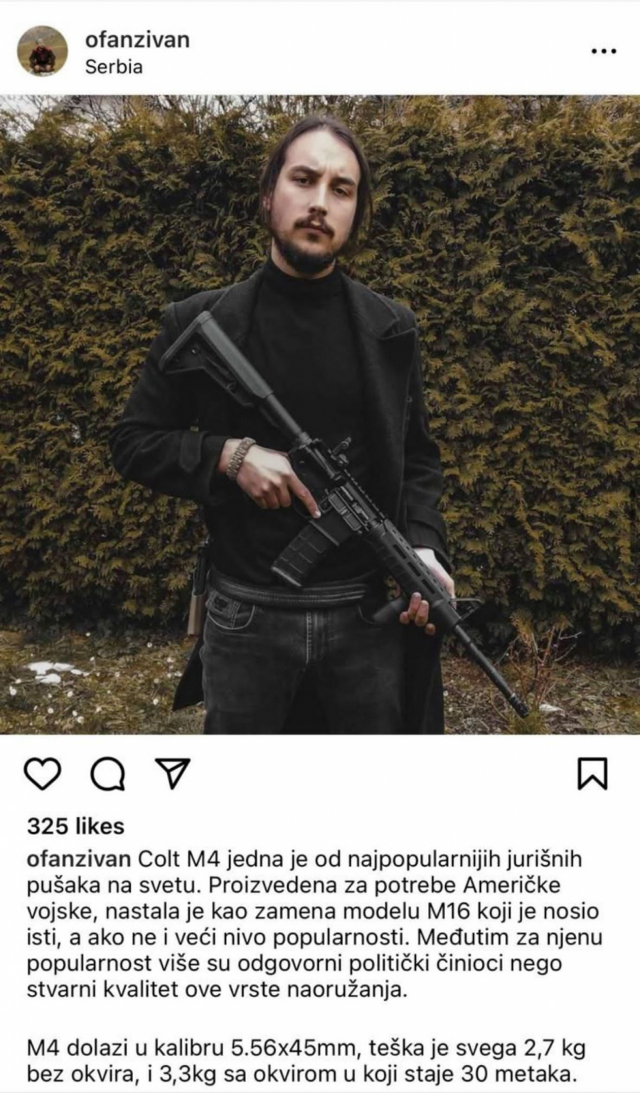 Šta očekivati od nekoga ko se slika sa oružjem u rukama.