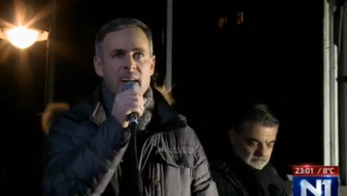 "Pozivam vas da svi zajedno napravimo prsten oko onoga što pripada vama Beograđanima i nama, to je ova zgrada, da je opkružimo! Osvojili smo je na izborima 17.12. a poslanici i odbornici da uđu unutra i da se obrate kao pobednici sa balkona! Idemo tamo, napred!"