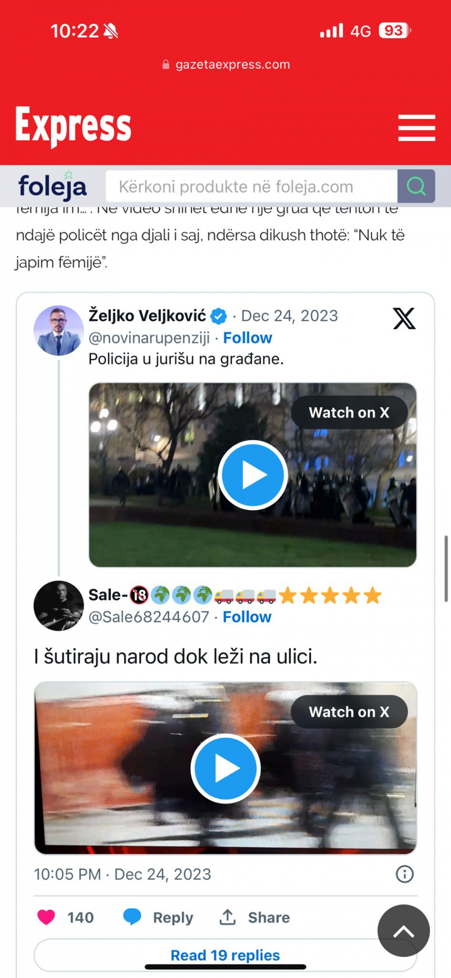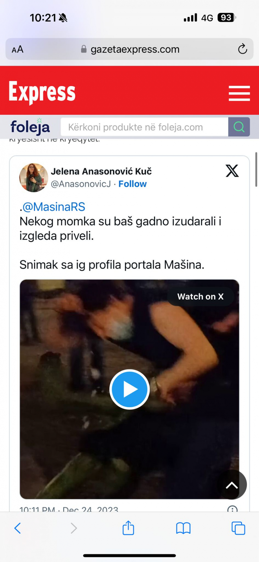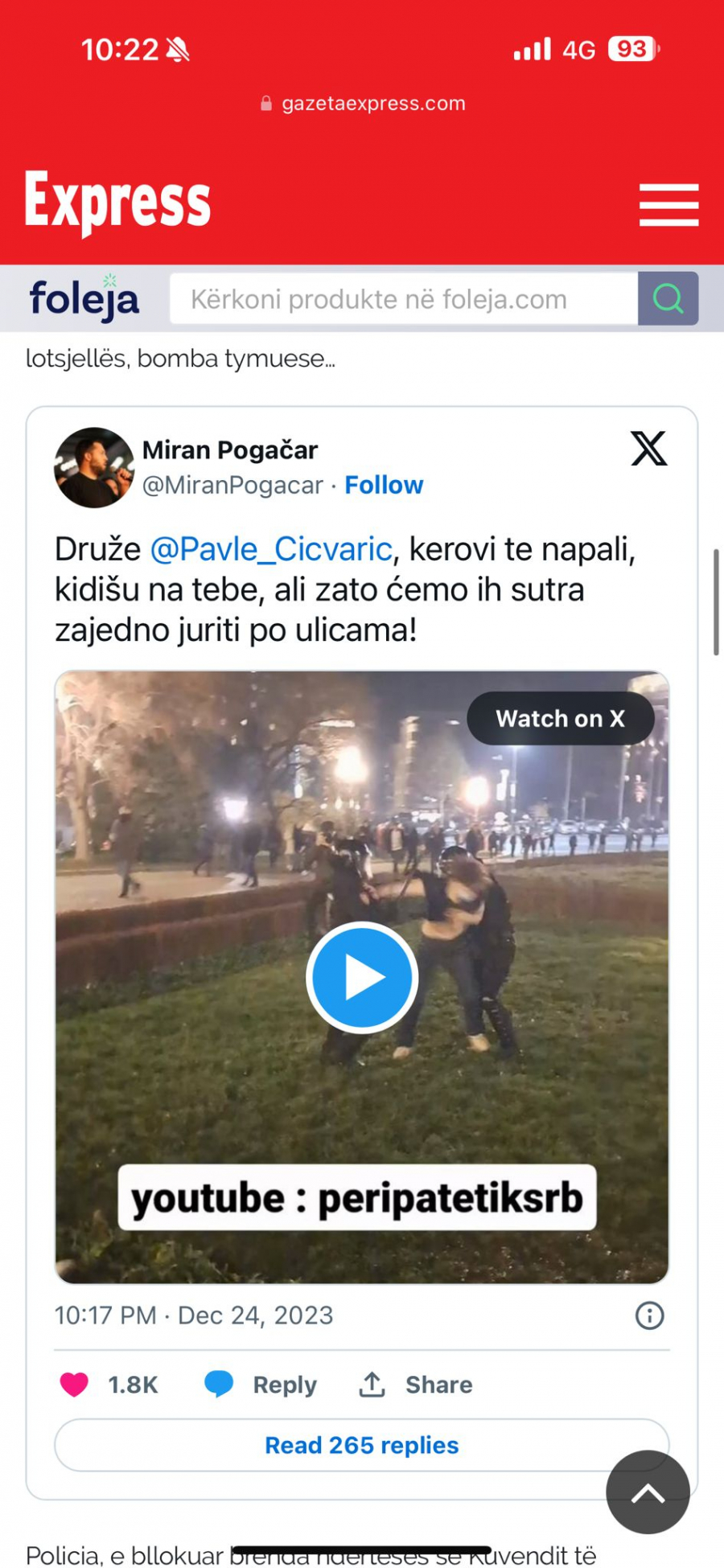 Naime, kao što možete videti u priloženim fotografijama, Kurtijevi mediji prenosili su objave sa Tvitera Željka Veljkovića, Mirana Pogačara i Jelene Anasonović koji su sramno vređali i ponižavali pripadnike policije koji su samo radili svoj posao i sprečavali haos besne rulje koja je divljala gradom.