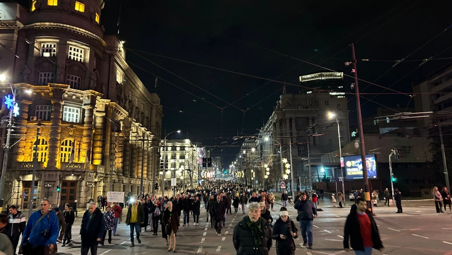 Kolona demonstranata koji su se okupili na 12. protestu kod RIK-a, krenula je ka "studentima".