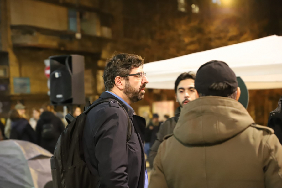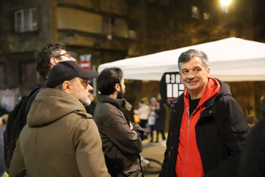 Ispred Ministarstva državne uprave stigli su Emilija Milenković i Ivan Bjelić, aktivisti i članovi upravnog odbora NVO "Krovna organizacija mladih Srbije" koja se finansira nemačkim novcem, i glavni agitatori takozvanih "studentskih protesta".