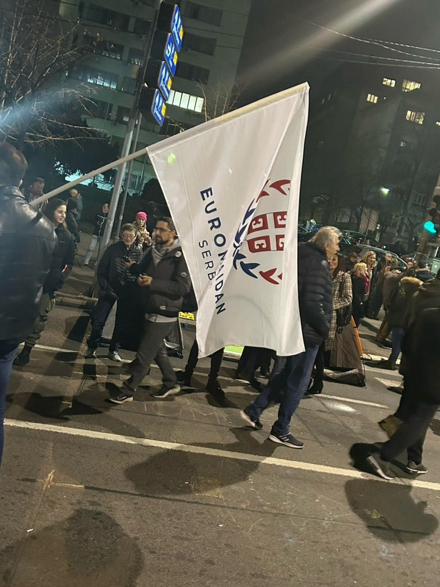 Na večerašnjem protestu se vijorila i zastava na kojoj je pisalo "EUROMAIDAN Serbia".