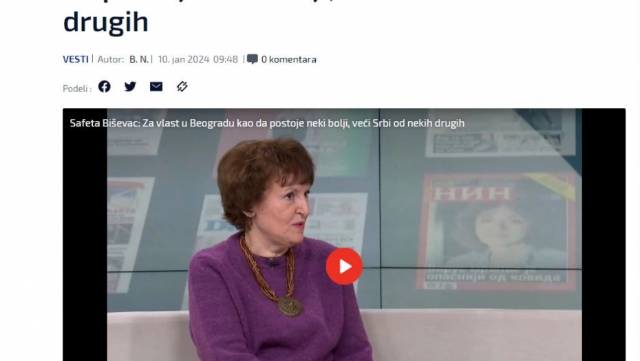 Na red je stigla i novinarka Danasa Safeta Biševac, koja pokušava da izazove sukob među srpskim narodom tako što ispaljuje besmislene optužbe protiv predsednika Srbije da više voli Srbe u Republici Srpskoj od Srba u Hrvatskoj!