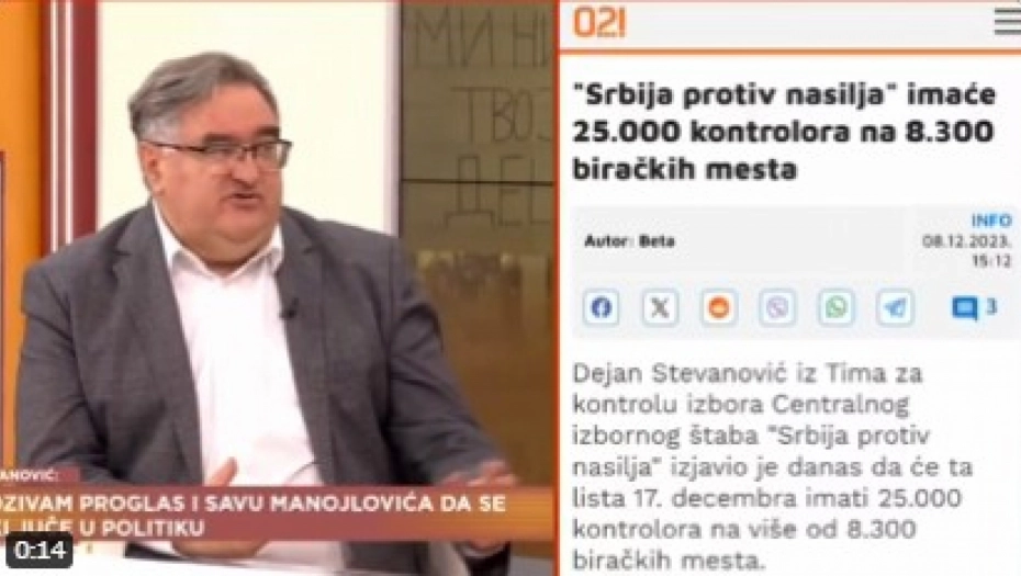Podsetimo, na izborima 17. decembra je bilo 8.273 biračkih mesta, tako da su imali po 3 kontrolora za svako biračko mesto u Srbiji! Nije valjda da ne verujete opoziciji?