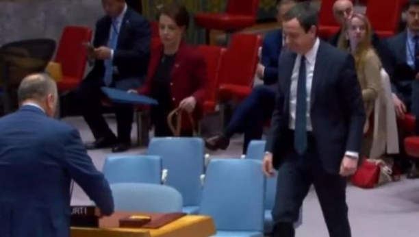ŠAMARČINA ZA KURTIJA Gledajte šta piše ispred lažnog premijera na samom početku sednice Saveta bezbednosti UN
