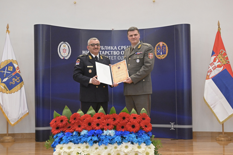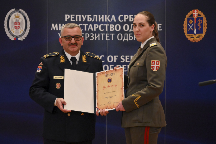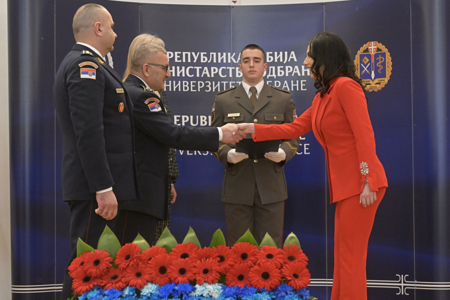 Na današnjoj svečanosti uručene su diplome onima koji su stekli zvanje doktora nauka na Univerzitetu odbrane, koje su uručili rektor Univerziteta odbrane, načelnik Vojne akademije pukovnik vanredni prof. dr Srđan Blagojević i dekan Medicinskog fakulteta VMA prof. dr Sonja Marjanović.