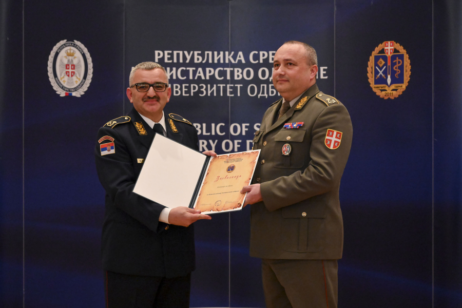 Na svečanosti su uručene i zahvalnice Univerziteta odbrane za saradnju Upravi za odnose sa javnošću Ministarstva odbrane, Komandi za obuku, Fondu za nauku Republike Srbije, Medicinskom fakultetu u Beogradu, a priznanja su uručena i nastavnicima kojima je prestao radni odnos u protekloj godini, kao i najboljim kadetima, prenosi mod.gov.rs