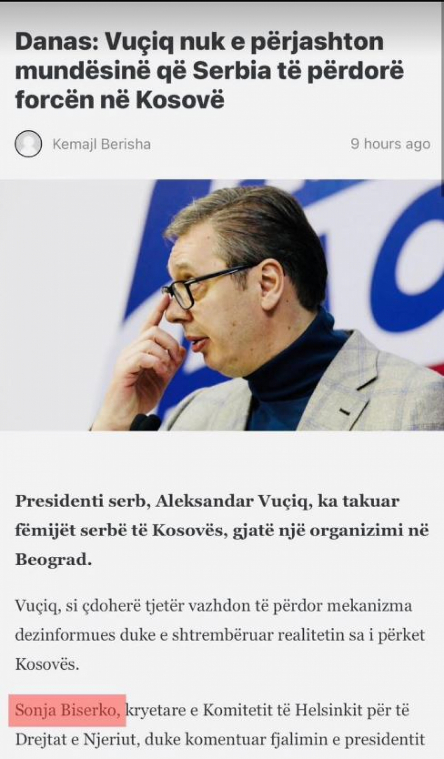 Naime, u medijima pod kontrolom Dragan Šolaka i Aljbina Kurtija osvanuli su tekstovi protiv Vučića. U svim tekstovima citira se jedna od najvećih mrziteljki našeg naroda - Sonja Biserko.