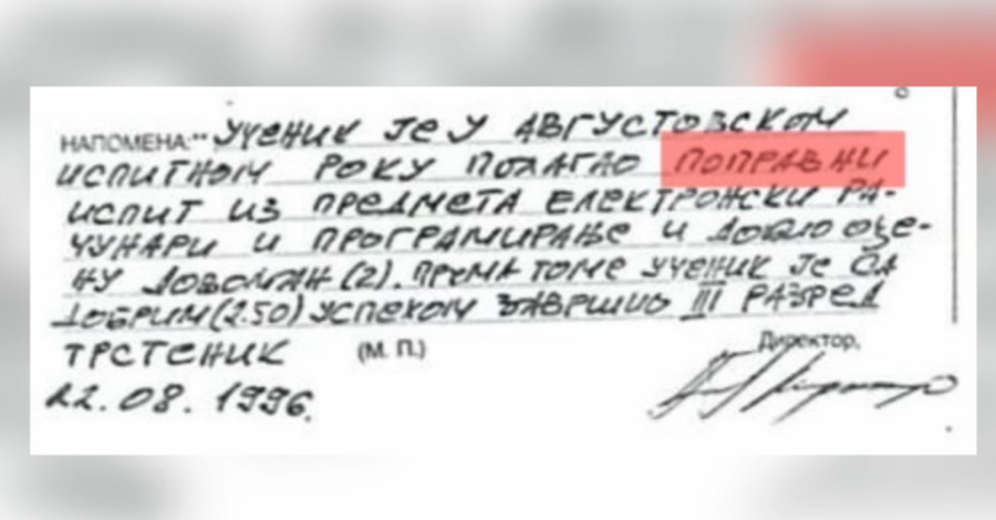 Njegovo svedočanstvo pokazuje - dovoljan, nedovoljan, išao na popravni.