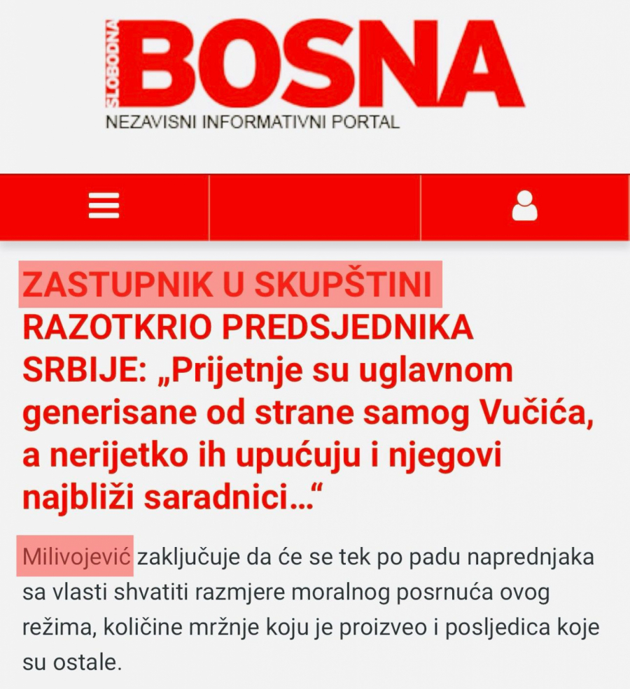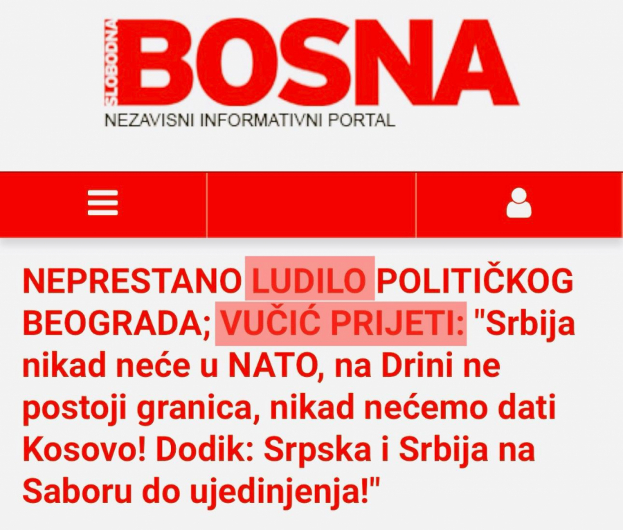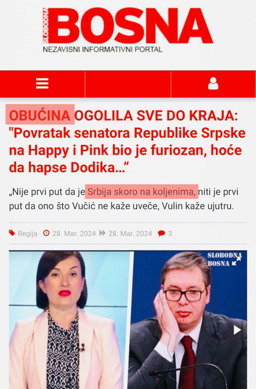 Tako Slobodna Bosna nastavlja posao đilasovaca, obrušavajući se na Srbiju i njenog predsednika Aleksandra Vučića.