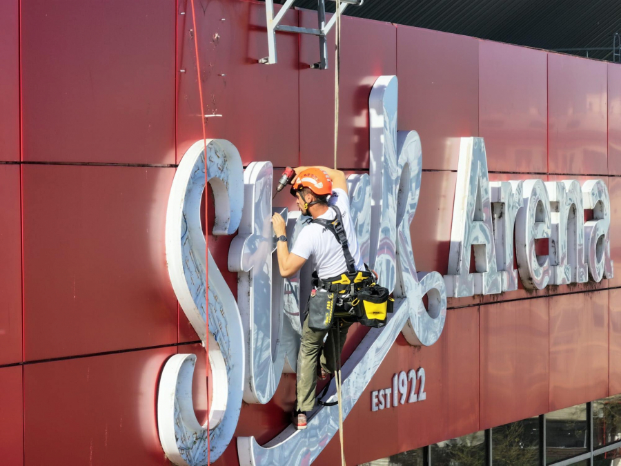 -„Beogradska arena“ i ova hala jedan je od simbola našeg grada, tu se održavaju najvažniji kulturni, sportski i svi drugi događaji i manifestacije. Od 2010. godine Arena je bila na prodaju, nosila je imena raznih firmi, kompanija, a poslednje koje je nosila bilo je „Štark arena“. Danas je krenulo skidanje tog natpisa jer ugovor ističe i ja se nadam da, bez obzira ko bude vodio grad Beograd u budućnosti, da se više ime „Beogradske arene“ neće dovoditi u pitanje. Grad Beograd je u situaciji da ne mora da prodaje svoje simbole – rekao je Šapić.
