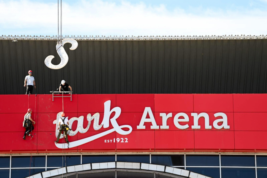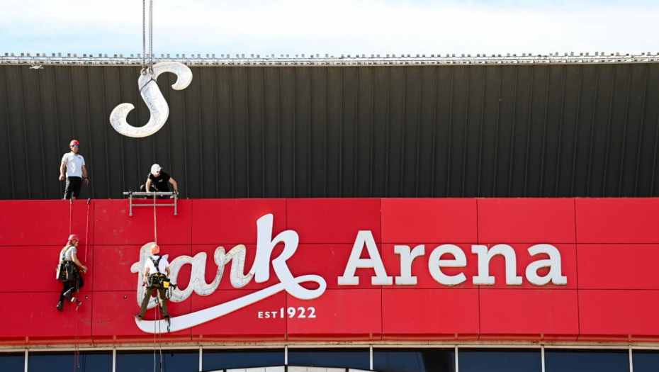 Od danas zvanično „Beogradska arena“ ponovo postaje „Beogradska arena“, vraćamo joj njeno izvorno ime, jer kao što sam u novembru mesecu i najavio, simboli grada Beograda više neće biti na prodaju dok god se ja u ovom gradu budem nešto pitao – rekao je predsednik Privremenog organa grada Beograda Aleksandar Šapić ispred Beogradske arene na Novom Beogradu, sa koje je počelo uklanjanje starog imena „Štark arena“.