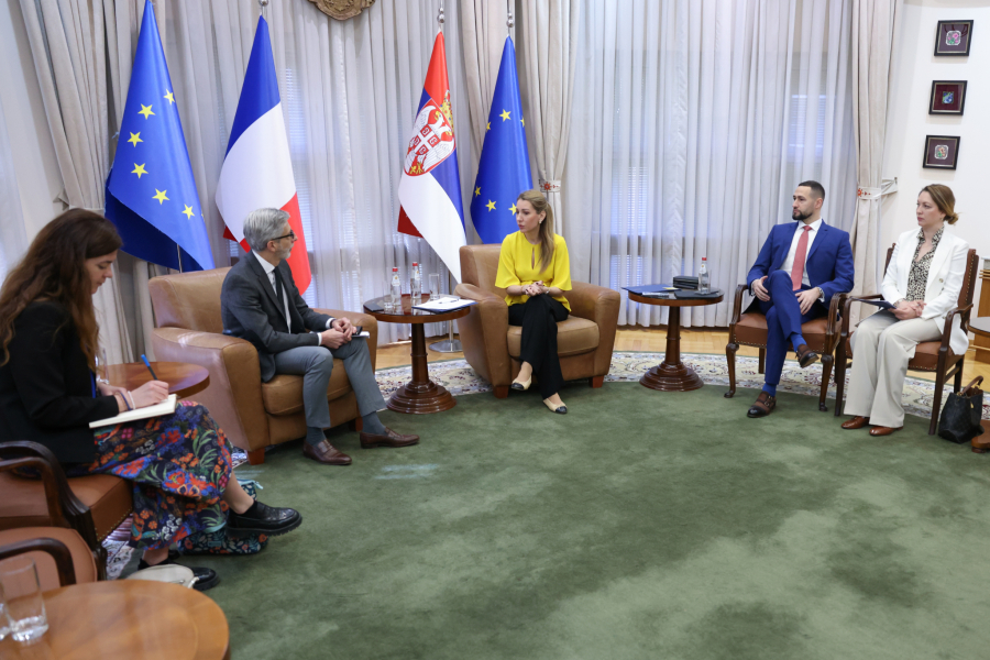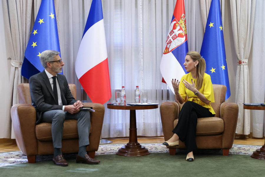 Prethodno, ministarka rudarstva i energetike Dubravka Đedović Handanović, sastala se danas u Vladi Srbije sa ambasadorom Francuske Pjerom Košarom sa kojim je razgovarala o pripremi predstojeće posete predsednika Srbije Aleksandra Vučića francuskom predsedniku Emanuelu Makronu i saradnji u oblasti energetike.
