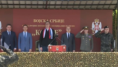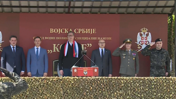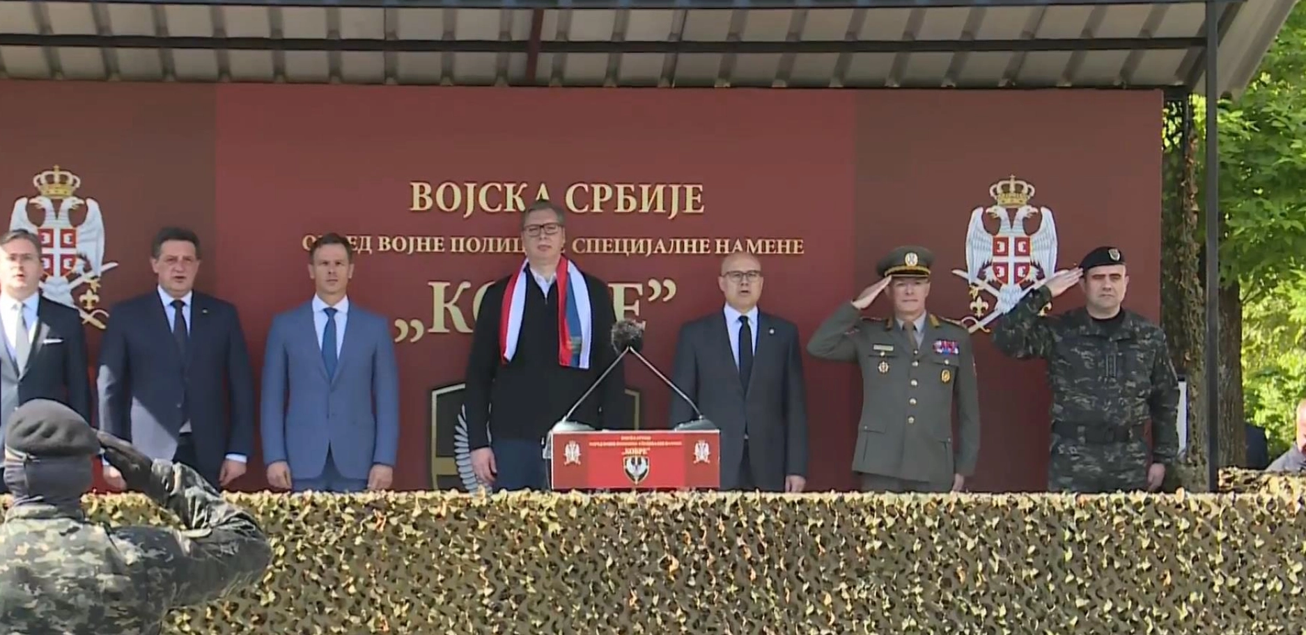 - U narednim danima i nedeljama, a pozivajući se i ugledajući se na vaš duh i snagu boriti svim političkim sredstvima da sačuvamo obraz i ugled Srbije i ovaj šal koji ste mi dali nosićemo sa ponosom na svakom mestu - od Ist Rivera do Strazbura i Brisela, ponoseći se najlepšo crveno-plavo-belom trobojkom koju nikada nećemo dati. Kao što im nećemo dati da srpski narod okarakterišu kao najgori narod na svetu. Mi ćemo kao političari da damo sve od sebe, da uradimo svoj posao i kao mala zemlja suprotstavićemo se. Zato što obraz nema cenu, jer Srbija nije na prodaju, otadžbinu volimo više od svega. Zato ćemo se suprotstaviti svima vama koji mislite da možete da menjate istroiju i da nas okarakterišete kao genocidan narod - rekao je Vučić nakon smotre "Kobri".