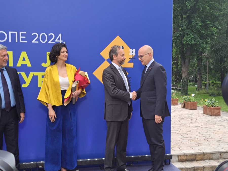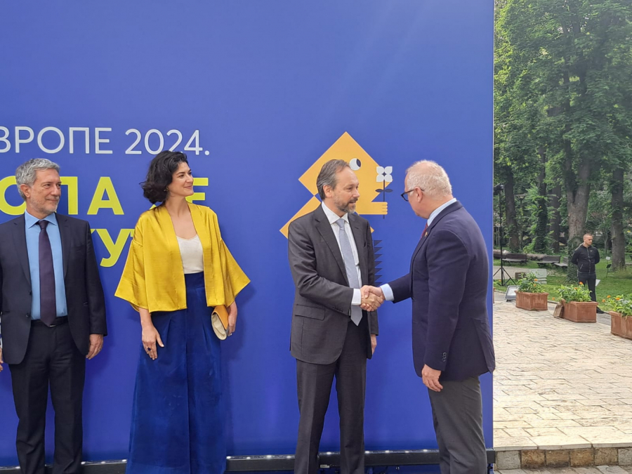 Na početku događaja, intonirane su himne EU i Republike Srbije.