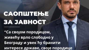 Ovim putem obaveštavam javnost da ću živeti sa svojom porodicom vrlo slobodno u Beogradu, za razliku od njihovih šefova koji imaju stanove od Beča do Londona, da ću uvek i svuda braniti interese države, svoje porodice i prava mojih saboraca kada ih neko sprečava da sprovode politiku @sns_srbija i predsednika Aleksandra Vučića.