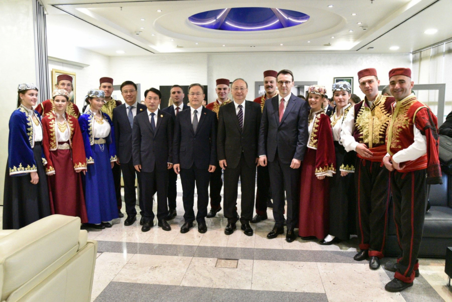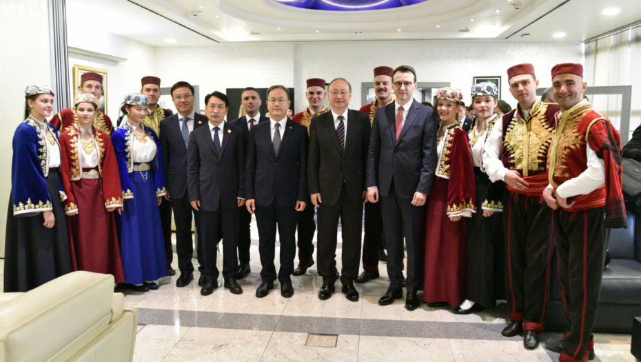 Za goste iz Kine, koje je dočekao i kineski ambasador Li Ming, KUD Kopaonik iz Leposavića izveo je kratak kulturno-umetnički program u znak dobrodošlice - pesme "Ovo je Srbija" po želji gostiju iz Pekinga i "Kosovo je srce Srbije".