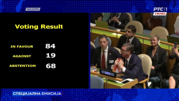 Na fotografiji koja sledi možete pogledati rezultate glasanja u Generalnoj skupštini UN.