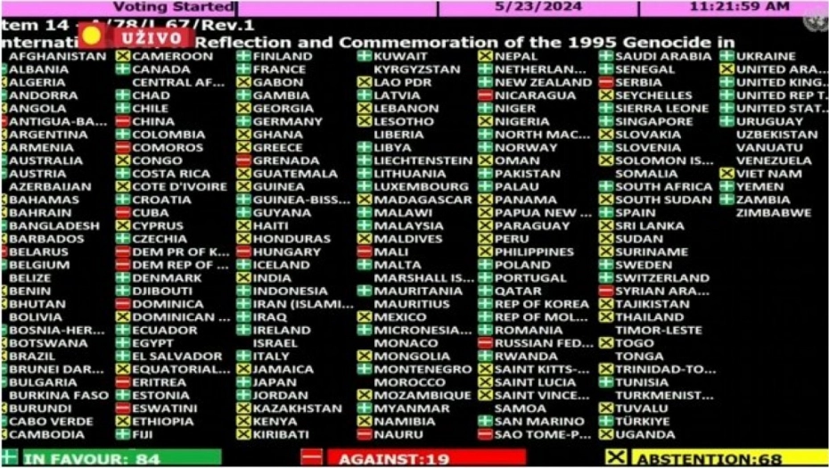 Podsećanja radio, sramna rezolucija o Srebrenici usvojena je juče u Generalnoj Skupštini UN, ali je na glasanju bilo više uzdržanih i protiv ukupno, nego onih zemalja koji su rezoluciju podržali.