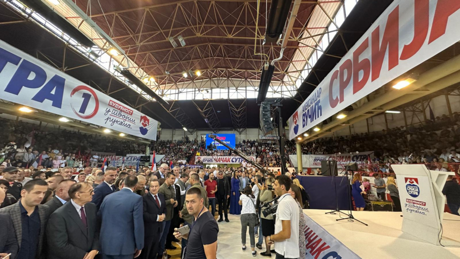 Hala Borac u Ccku je mala za sve one koji zele da pruze podrsku Vucicu i listi okupljenoj oko SNS-a.