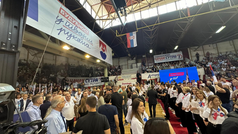 Skup izborne liste „Aleksandar Vučić - Čačak sutra“ počeo je u 12 sati himnom "Bože Pravde".