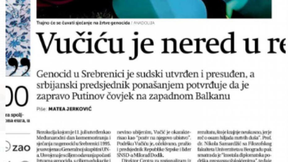 Hrvati bi trebalo malo da se svojim postupcima i izjavama, a ne Vucucem!