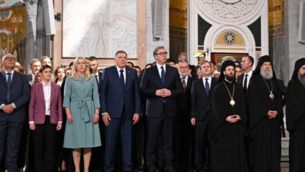Predsednik Republike Srbije Aleksandar Vučić prisustvovao je danas, povodom prvog svesrpskog sabora "Jedan narod, jedan sabor - Srbija i Srpska" molebanu za Republiku Srbiju i Republiku Srpsku u Hramu Svetog Save sa predsednikom Republike Srpske Miloradom Dodikom, zvaničnicima najviših instutucija Republike Srbije i Republike Srpske i predstavnicima Srba iz regiona.