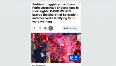 Kaže da ultrasi iz Beograda zastupaju "agresivni srpski nacionalizam", te da ne podržavaju zapadne sile, već su pro-putinovski orijentisani.