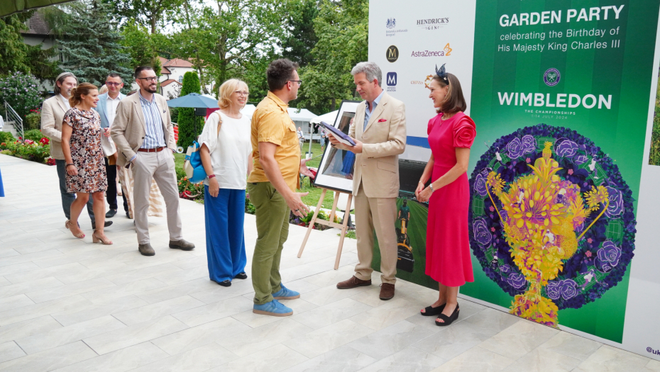 Domaćini proslave Kraljevog zvaničnog rođendana u Beogradu su britanski ambasador u Srbiji, Edvard Ferguson sa suprugom Kerolajn.