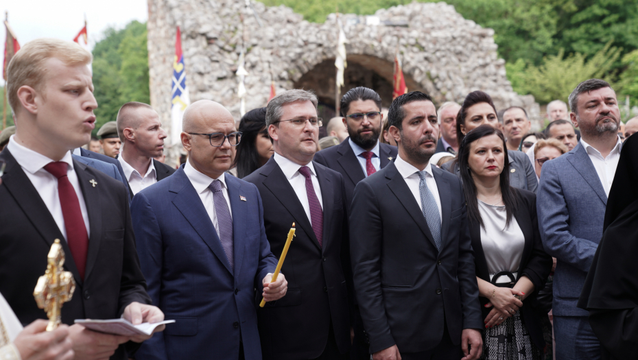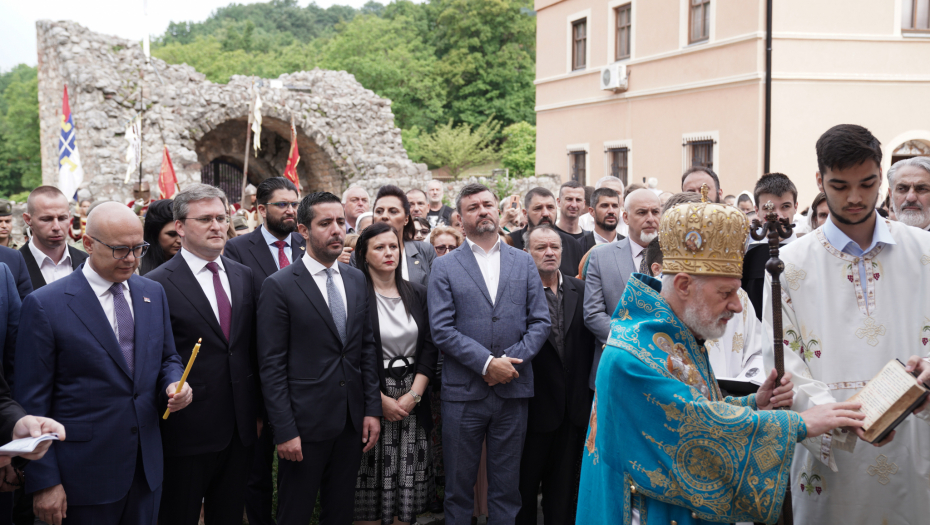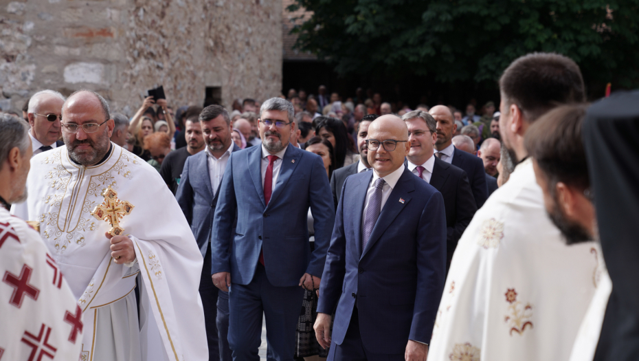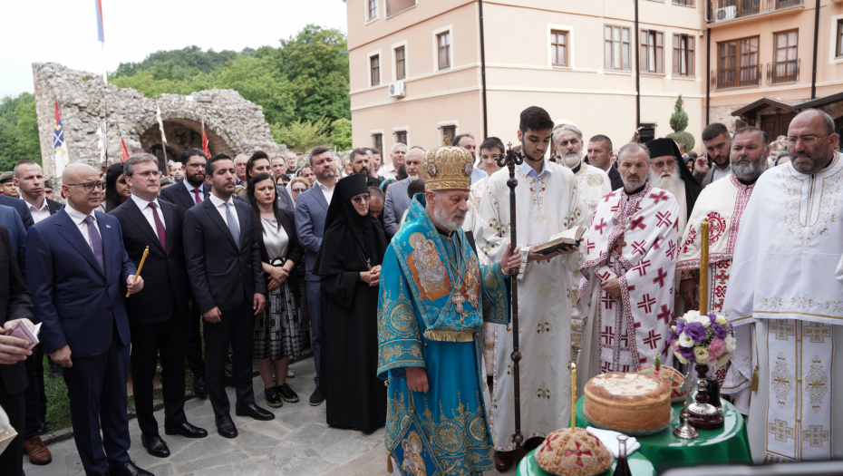 Predsednik Vlade Miloš Vučević prisustvuje danas liturgiji koju povodom praznika Vidovdana u manastiru Ravanica služe vladika braničevski Ignjatije i sveštenstvo SPC. Pre početka liturgije hor "Vozglas" otpevao je himnu "Bože pravde".