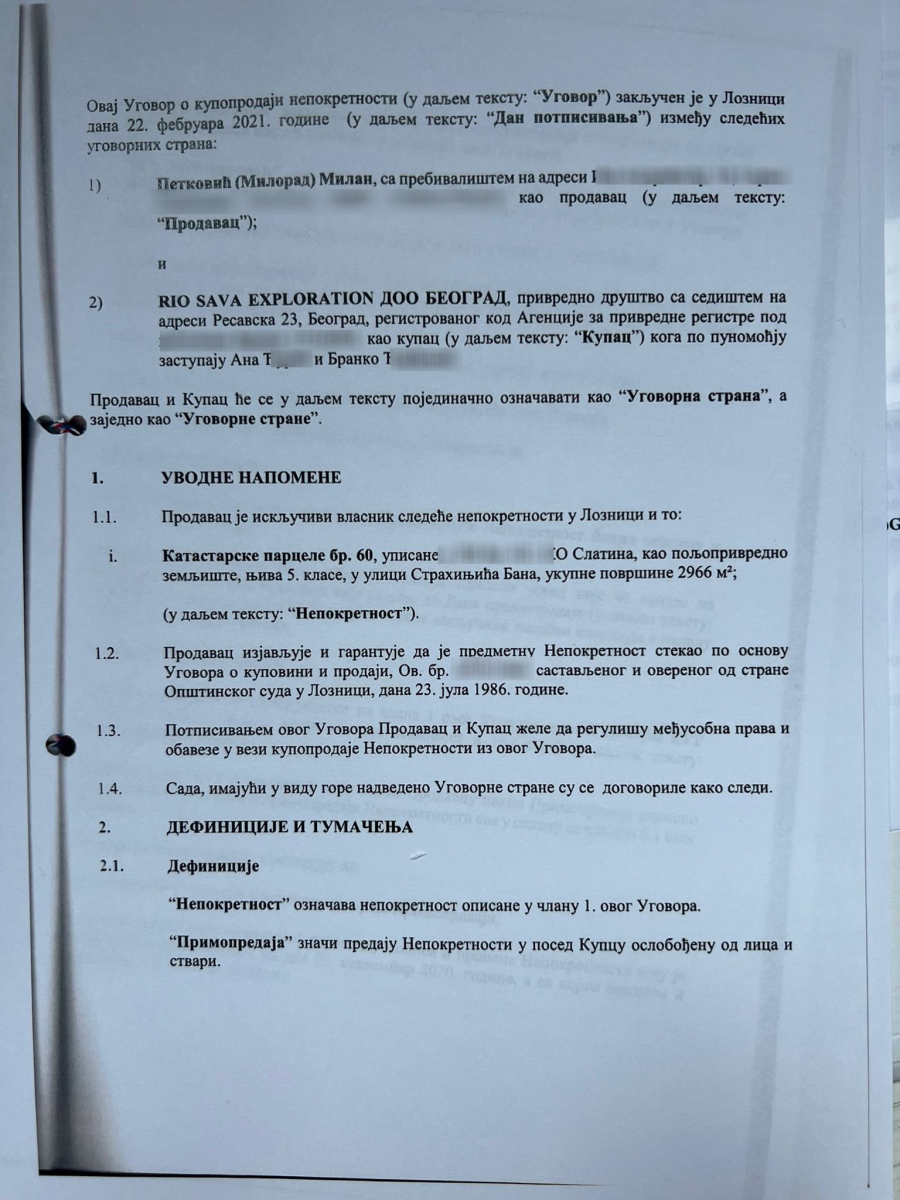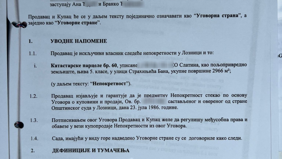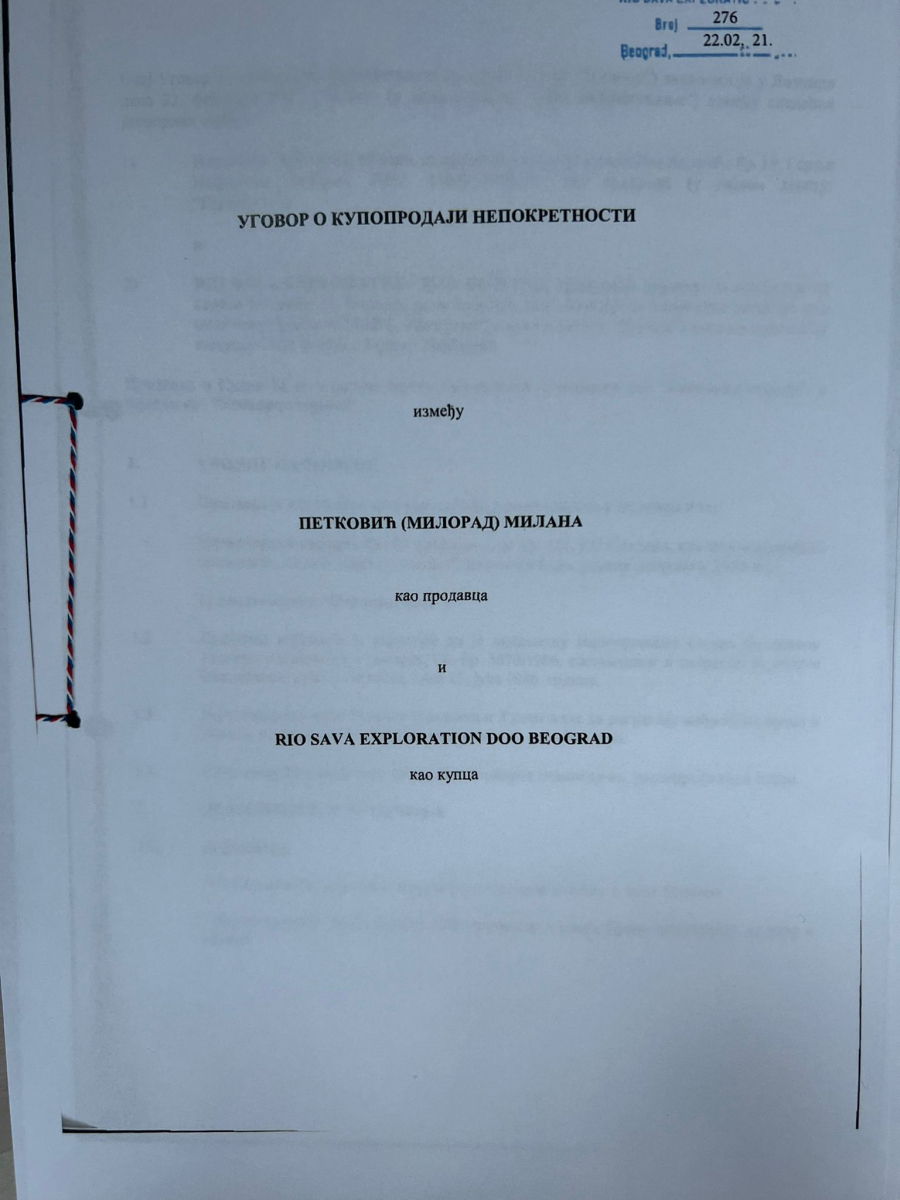 O prodaji zemljišta od strane porodice Petković svedoče dokumenta, odnosno kupoprodajni ugovor:
