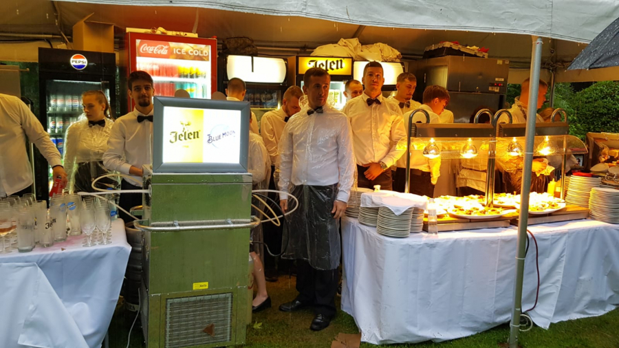 Goste poslužuju konobari koji su odeveni u kabanice.