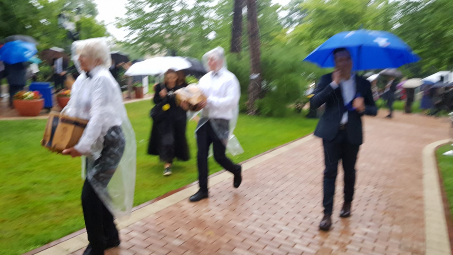 Cak ni kisa nije uspela da poremeti obelezavanje jednog ovako vaznog dana za SAD. Vucic je svojim prisustvom ukazao cast americkom ambasadoru i njegovoj zemlji.