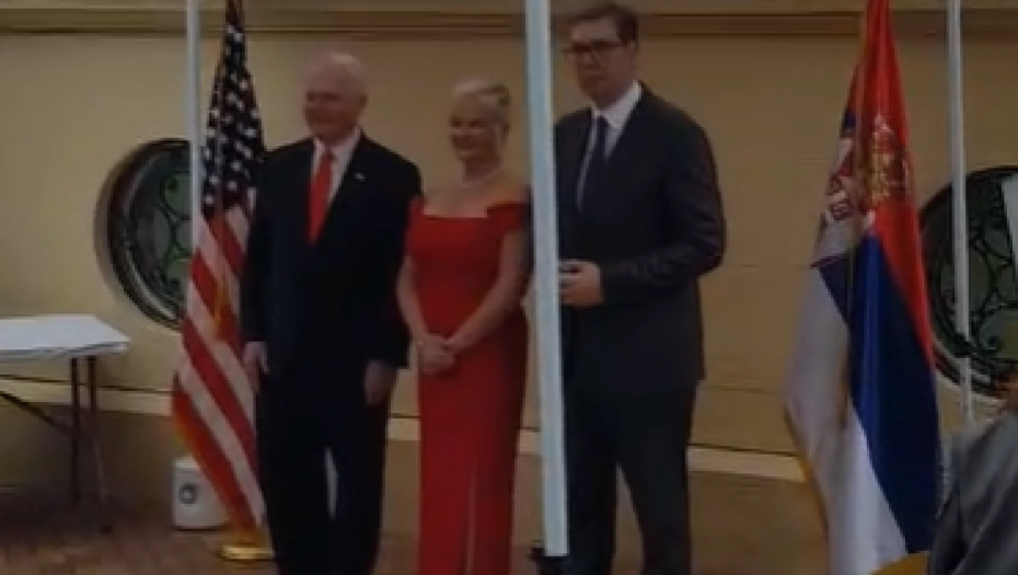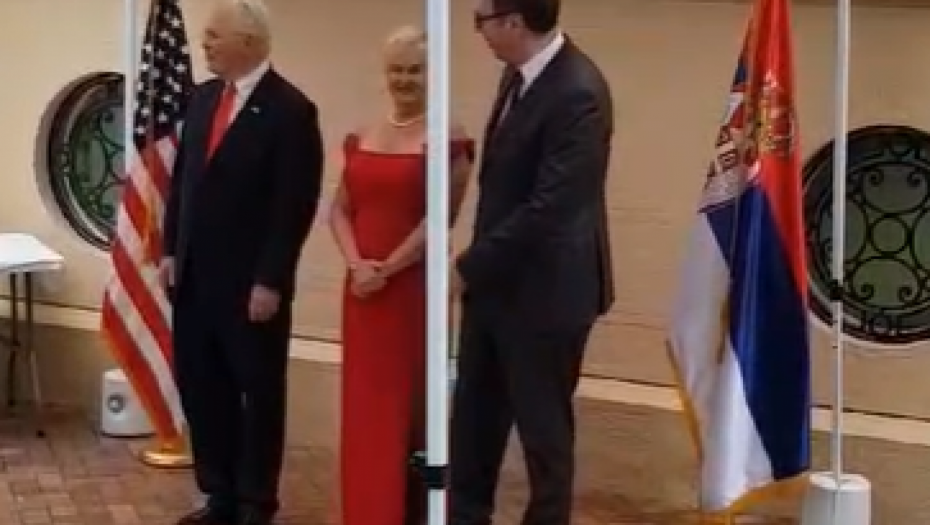 PREDSEDNIK VUČIĆ NA SVEČANOM PRIJEMU U AMBASADI SAD-a Danas je značajan dan, visoki zvaničnici raspoloženi i uprkos kiši (FOTO)