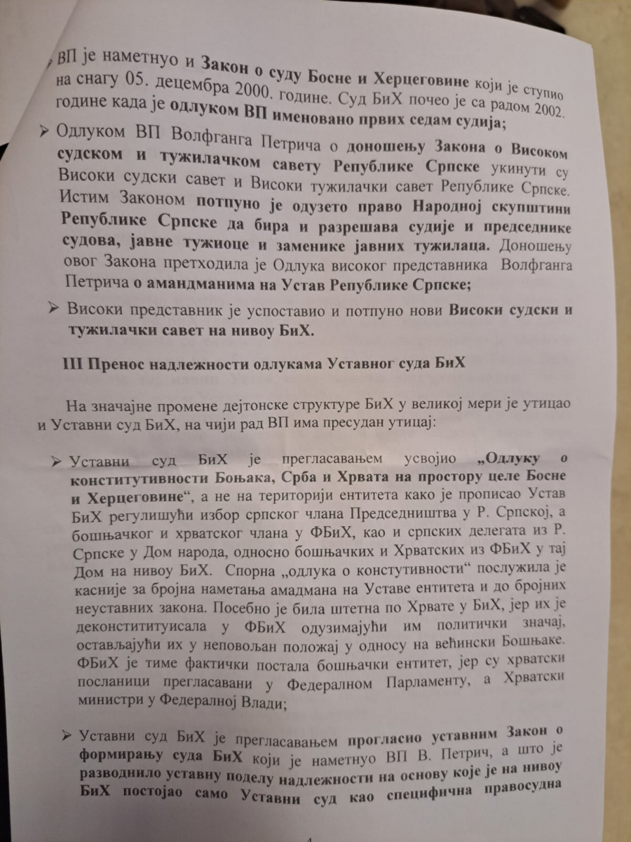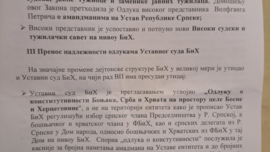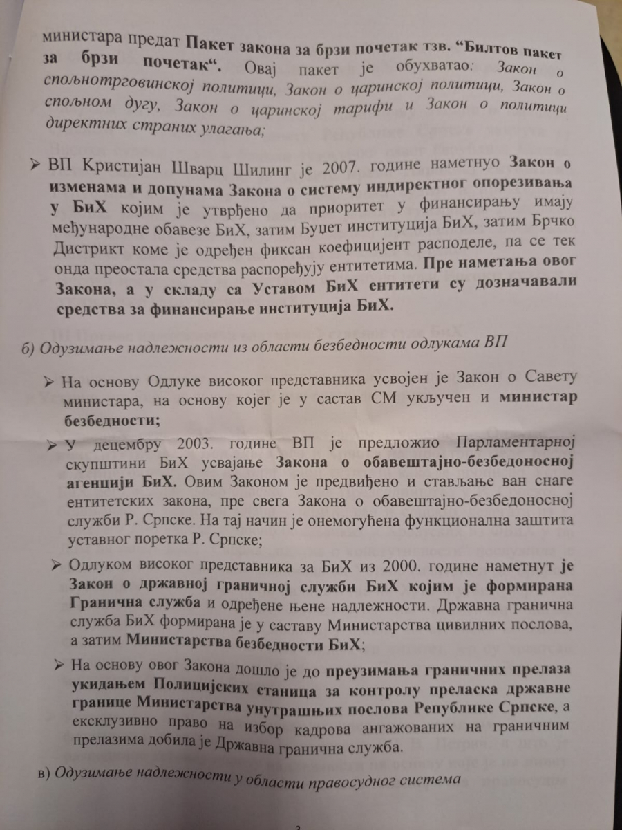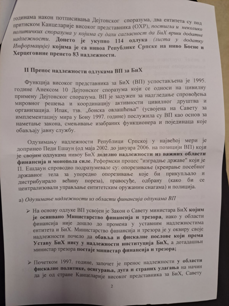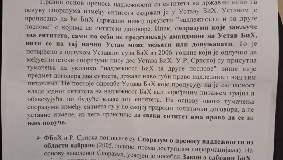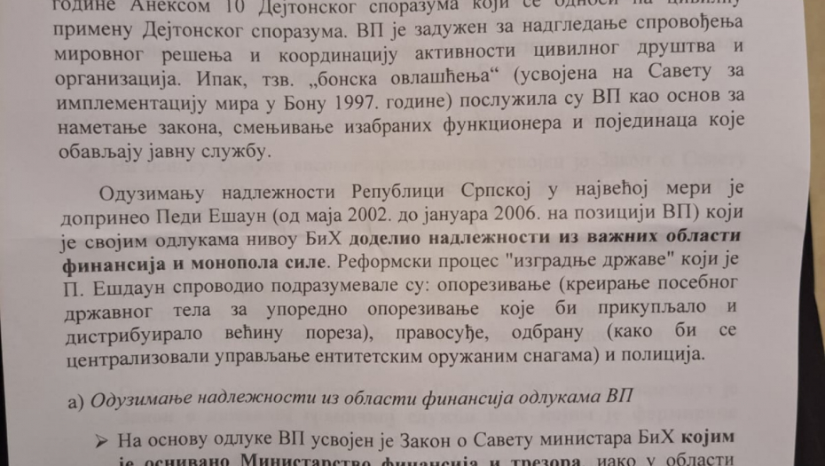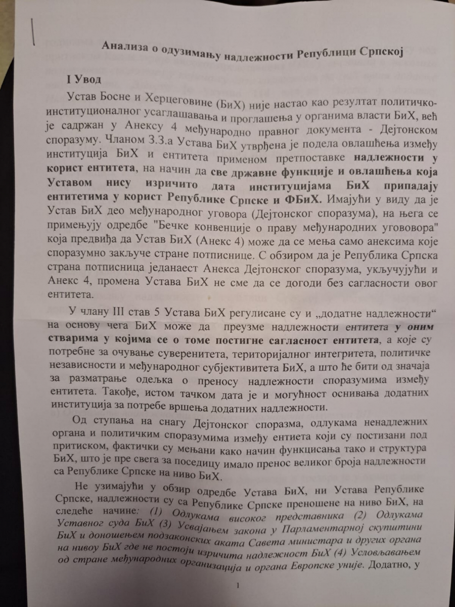 DETALJNA ANALIZA O ODUZIMANJU NADLEŽNOSTI REPUBLICI SRPSKOJ Ovaj Vučićev dokument pokazuje kako se ruši Dejtonski sporazum