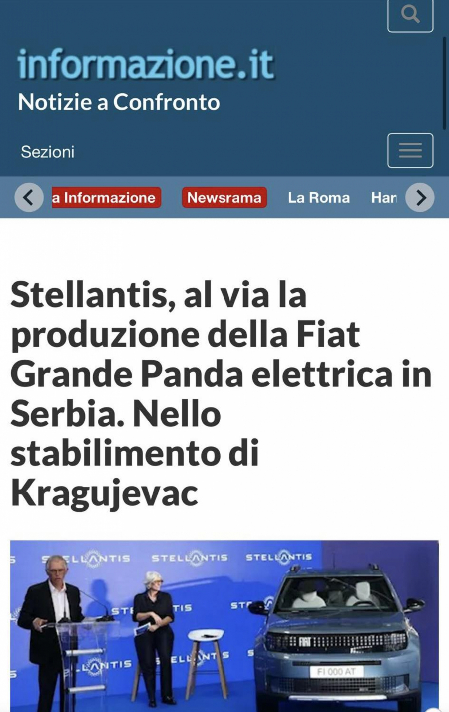 U fabrici Stelantisa u Kragujevcu svečano je inaugurisana nova proizvodna linija za proizvodnju električnih vozila u modernizovanoj fabrici, čime je označen početak probne proizvodnje novog modela "fijat grande panda".