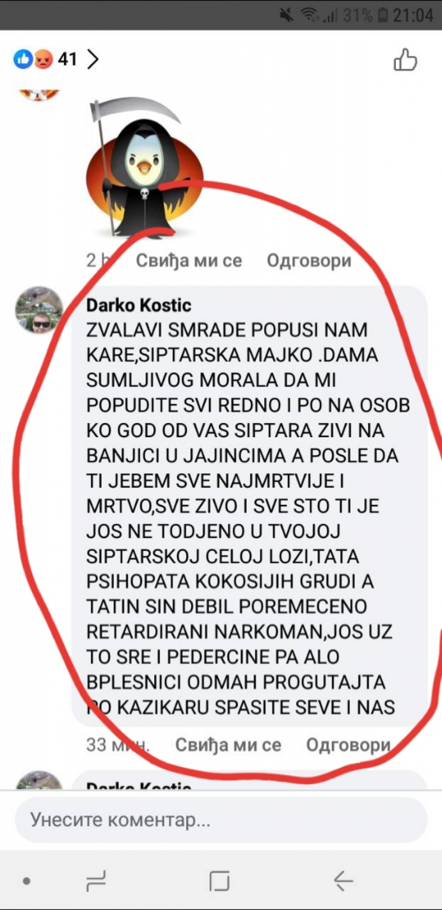 Nadlezne institucije moraju reagovati na ovakve javne pretnje smrcu. Pod hitno!!!