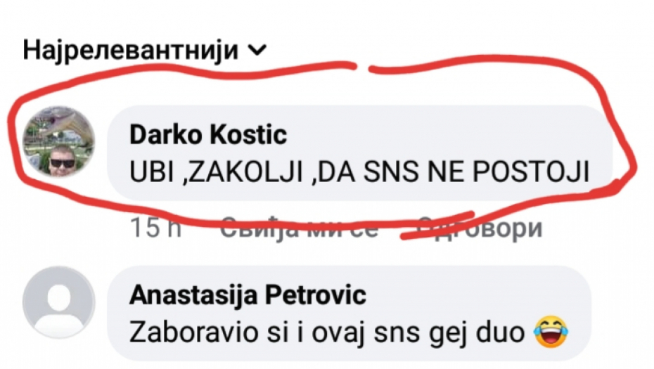 Pozivamo hitno sve državne nadležne organe da reaguju i procisuiraju osobe koje ovakve monstruozne stvari mogu javno da pišu i pozivaju na ubistvo predsednika Aleksandra Vučića kao i članova Srpske napredne stranke.
