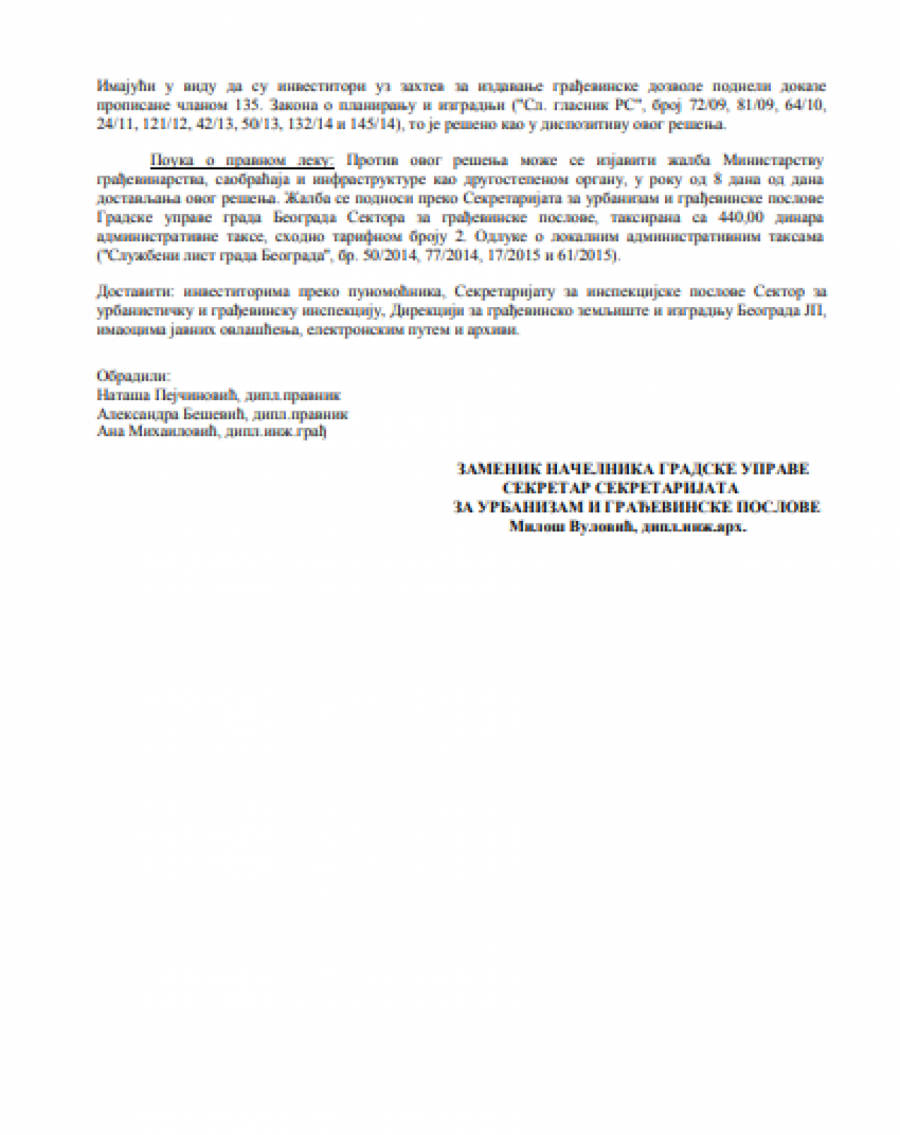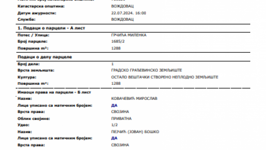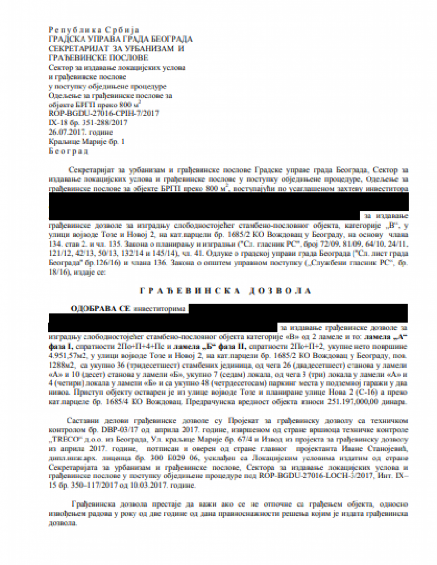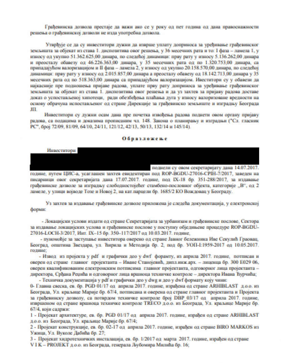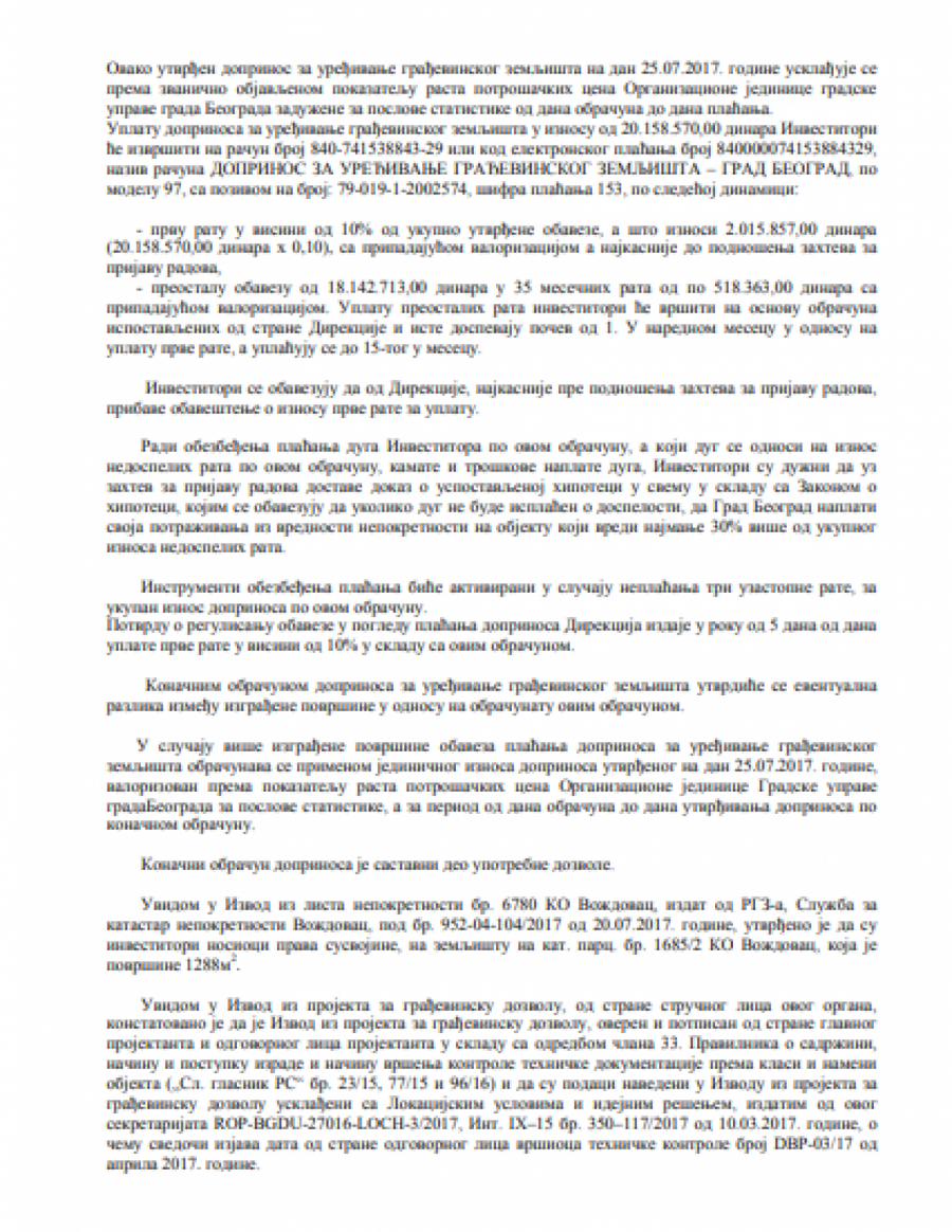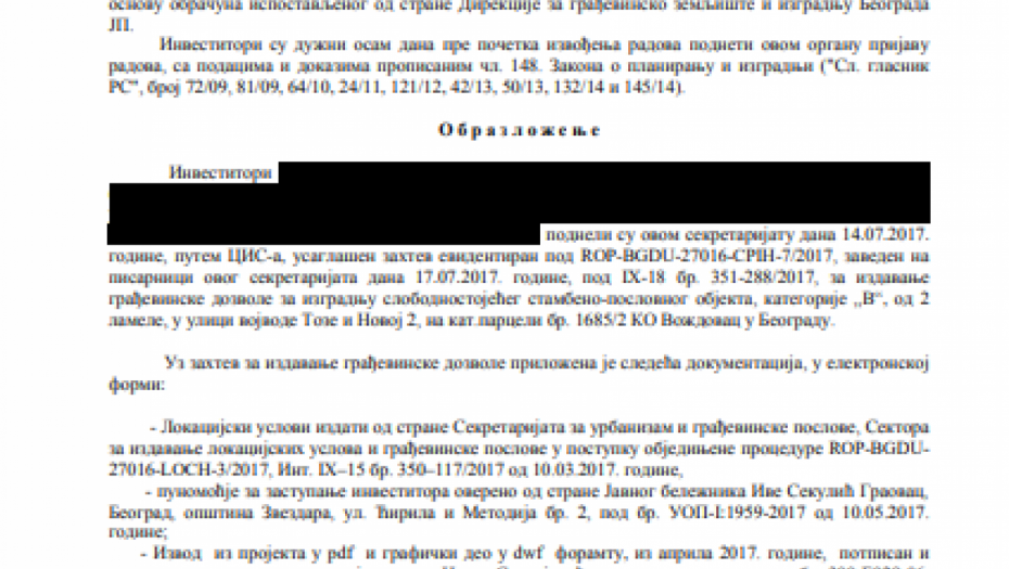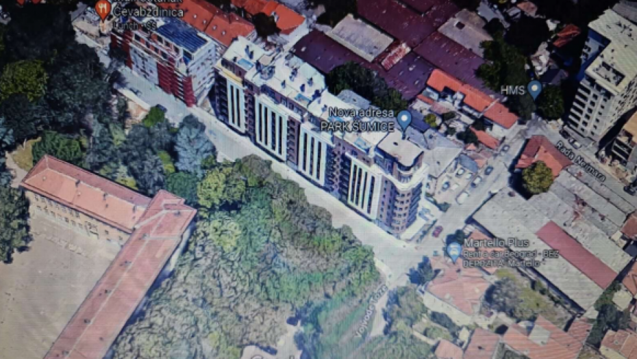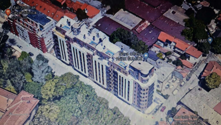- Slušamo da se bori za zaštitu životne sredine, ali sve dok ne pomenemo jednu zgradu a ona se zove "Ekskluzivni kompleks park Šumice", ovu sliku pokazujem skinutu sa interneta, vidi se gospodin koji se predstavlja kao kum gospodina Jovanovića, inače ga zovu Miša Ćuskija, izgradio je pored samog parka. To bi bilo u redu da pre izgradnje tog kompleksa na tom mestu nije bilo zelenilo i šuma. Kum Aleksandra Jovanovića Ćuta posekao je 461 stablo. Da li ste mogli da čujete da je bili protesta kad su se park Šumice gradile? Da li ste čuli da se neko bunio? Znači da nešto može kum, ali ne može neko drugi.