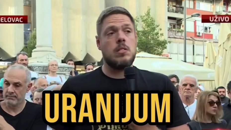 Vladimir Štimac, bivši košarkaš i funkcioner Novog DSS-a Miloša Jovanovića, na protestu protiv iskopavanja litijuma u Aranđelovcu, gde ne postoji nikakav plan da se iskopava litijum, rekao je da vlast pokušava da skladišti uranijum u Srbiji.