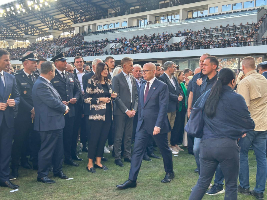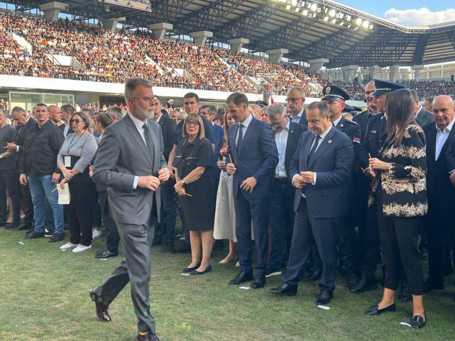 Stadion u Loznici dupke pun čeka dolazak predsednika Vučića, partijarha Porfirija i Milorada Dodika da počne obeležavanje 29 godina od "Oluje".