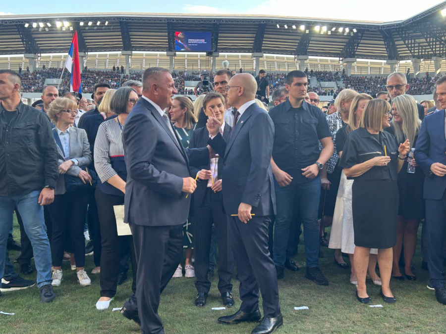 - Mi ćemo da nastavimo da gradimo svoju zemlju. I na ovom velelepnom stadionu vidite koliko je Srbija napredovala. I menjaće se i napredovaće još više, jer bez naše borbe, rada, truda, neće biti napretka za našu zemlju - ukazao je Vučić.