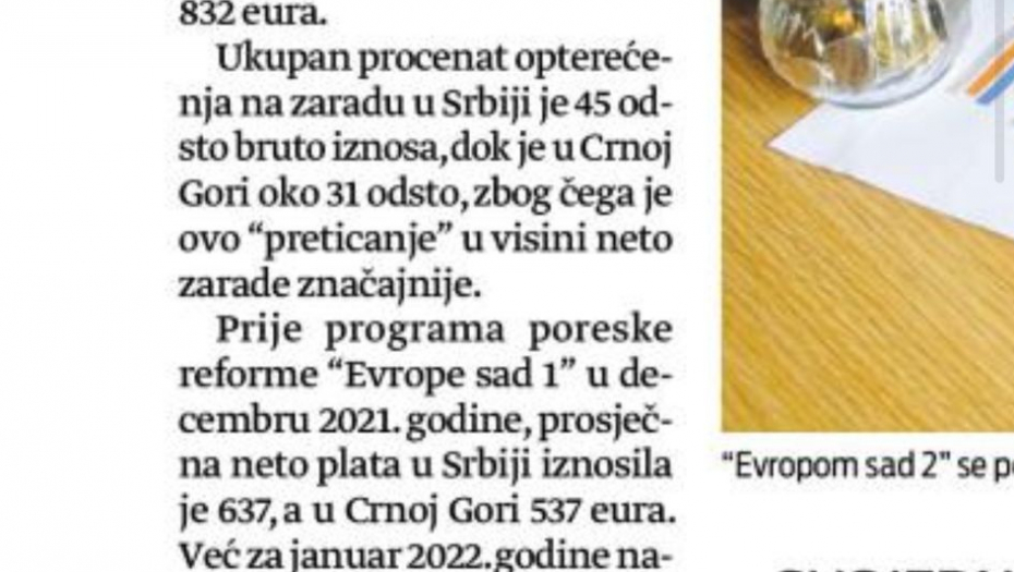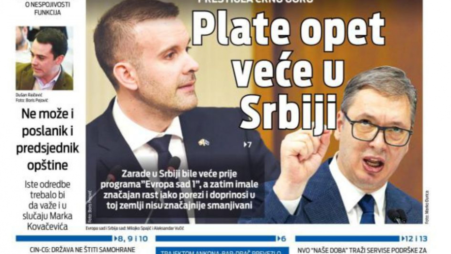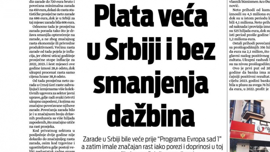 ''Plate ponovo veće u Srbiji, susedna država nakon dve i po godine ponovo prestigla Crnu Goru'', stoji u naslovu.